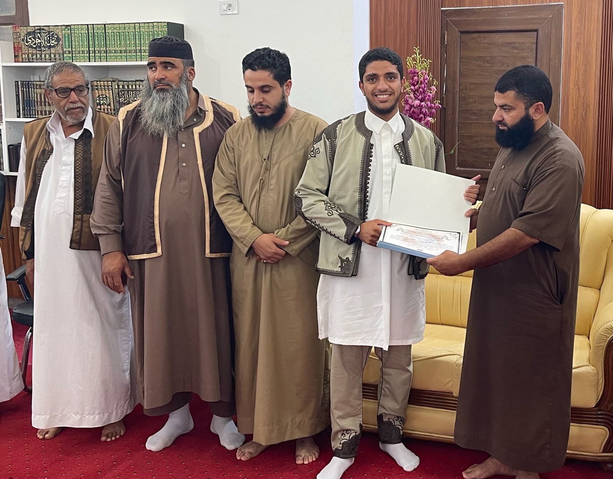 وحضر هذا المحفل القرآني المبارك مدير إدارة شؤون القرآن الكريم والسنة النبوية، ومدير مكتب أوقاف الخمس، وعدد من موظفي الهيئة والمكتب، إلى جانب أعيان المنطقة وأهاليها الذين شاركوا أبناءهم فرحة التتويج بحفظ كتاب الله.