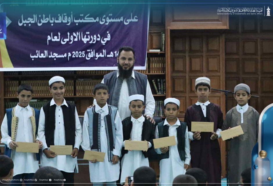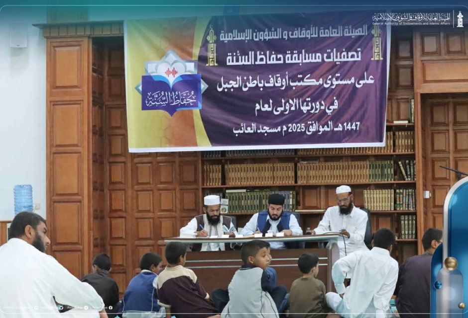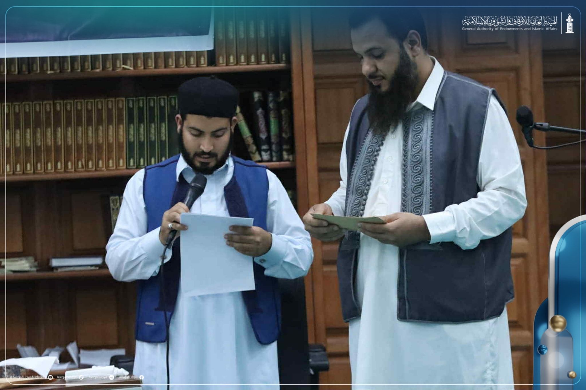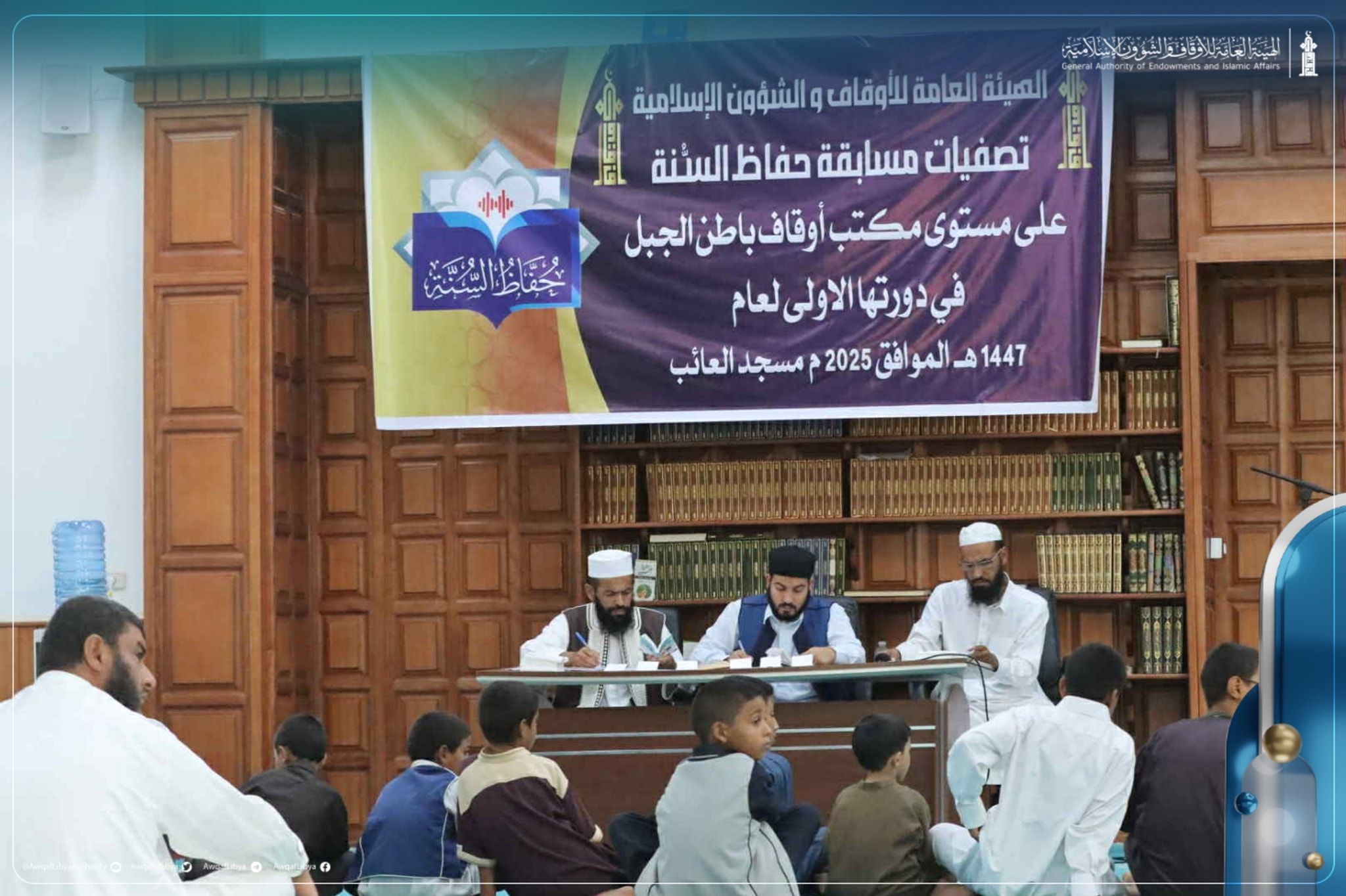 اختتام تصفيات مسابقة حفاظ السنة النبوية على مستوى مكتب أوقاف باطن الجبل، تمهيدًا للتصفيات النهائية المزمع إقامتها في مطلع شهر نوفمبر على مستوى دولة ليبيا، ضمن فعاليات المسابقة التي تنظمها الهيئة العامة للأوقاف والشؤون الإسلامية سعيًا لترسيخ حفظ السنة النبوية وفهمها بين أبناء الوطن.
