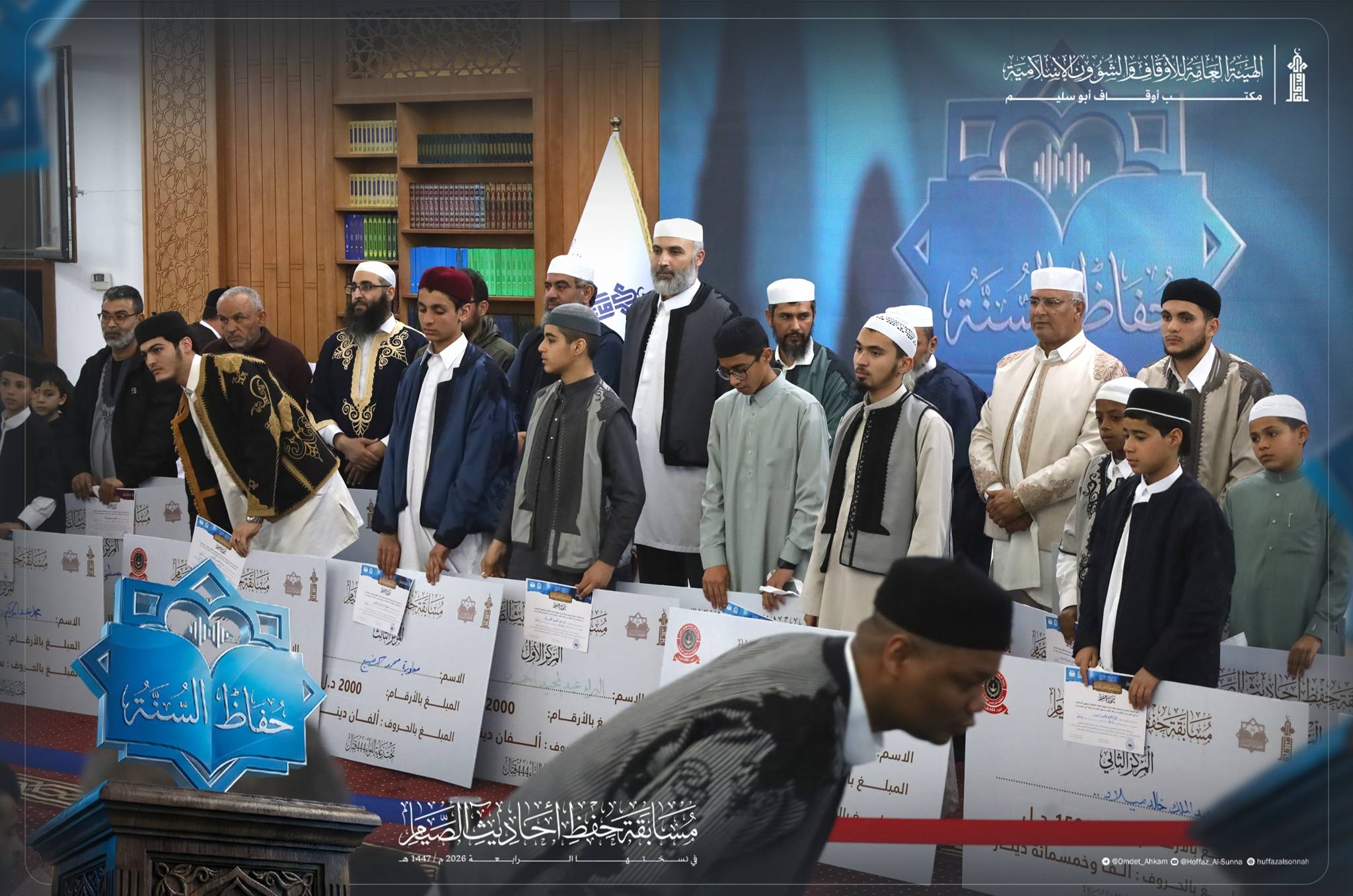 وشهد الحفل حضور #رئيس_الهيئة العامة للأوقاف والشؤون الإسلامية، وعميد بلدية أبي سليم، وآمر اللواء، إلى جانب عدد من المشايخ وطلبة العلم وأولياء الأمور، في أجواء إيمانية عامرة بالفرح والاعتزاز.