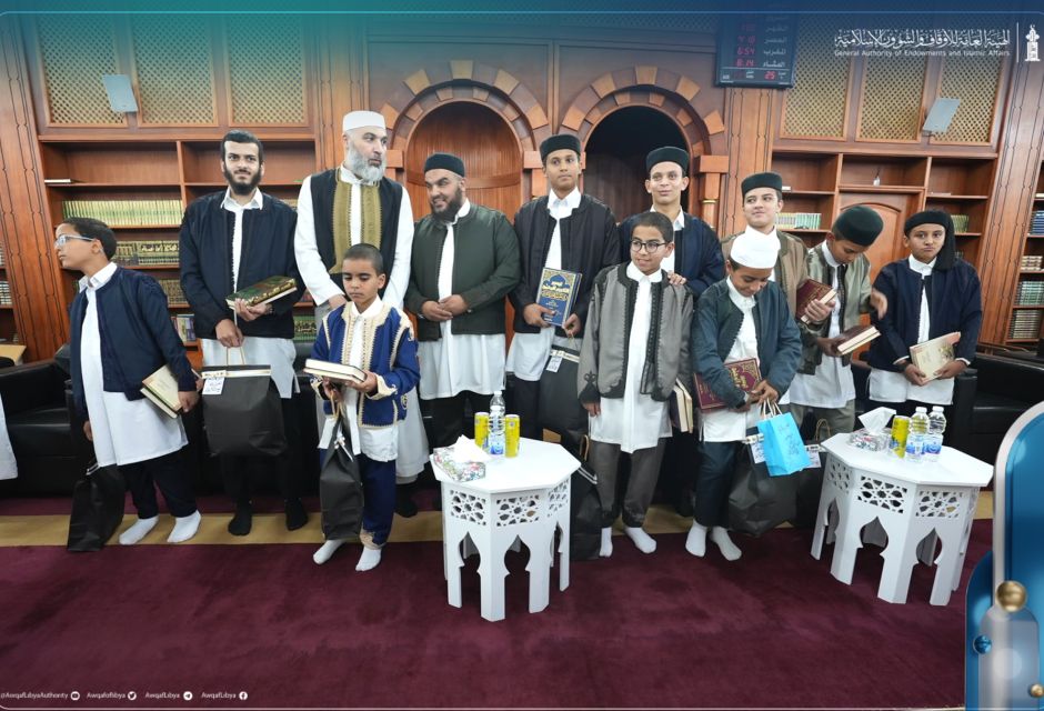 في أجواء قرآنية إيمانية مهيبة، شهد مسجد “خليفة كرواط الجديد” بمدينة “#جنزور” مراسم ختم عشرة من طلبته كتاب الله العزيز، في محفل مهيب حضره #رئيس_الهيئة العامة للأوقاف والشؤون الإسلامية “أ. محمد احميدة العباني”، إلى جانب عدد من المشايخ والمقرئين، وجمع غفير من الأهالي ومحبي #القرآن_الكريم.وقد تخرّج هؤلاء الحفظة على يد شيخهم المربي “عبدالبارئ رجب العربي”، الذي بذل جهداً مباركاً في تعليمهم وإعدادهم ليكونوا من حملة كتاب الله وسفرائه في الأرض.وتخلل الاحتفال كلمات طيبة أثنت على عظمة هذه النعمة، وعلى ما تبذله #الهيئة العامة للأوقاف من جهود متواصلة لدعم مراكز التحفيظ ورعاية الناشئة، ليبقى القرآن العظيم راسخاً في القلوب، منيراً للبيوت، وعاملاً لبناء مجتمع يسير على هدي كتاب الله وسنة نبيه صلى الله عليه وسلم.