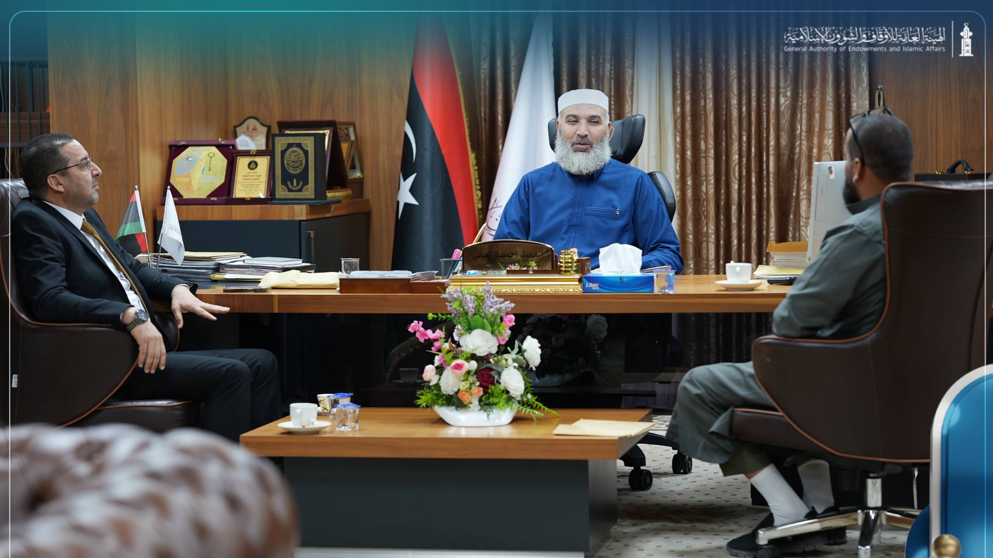 استقبل #رئيس_الهيئة العامة للأوقاف والشؤون الإسلامية، أ. محمد احميدة #العباني، صباح اليوم بديوان الهيئة، عميد بلدية #كاباو، في إطار تعزيز أواصر التعاون والتنسيق المشترك بين #الهيئة#والبلدية.