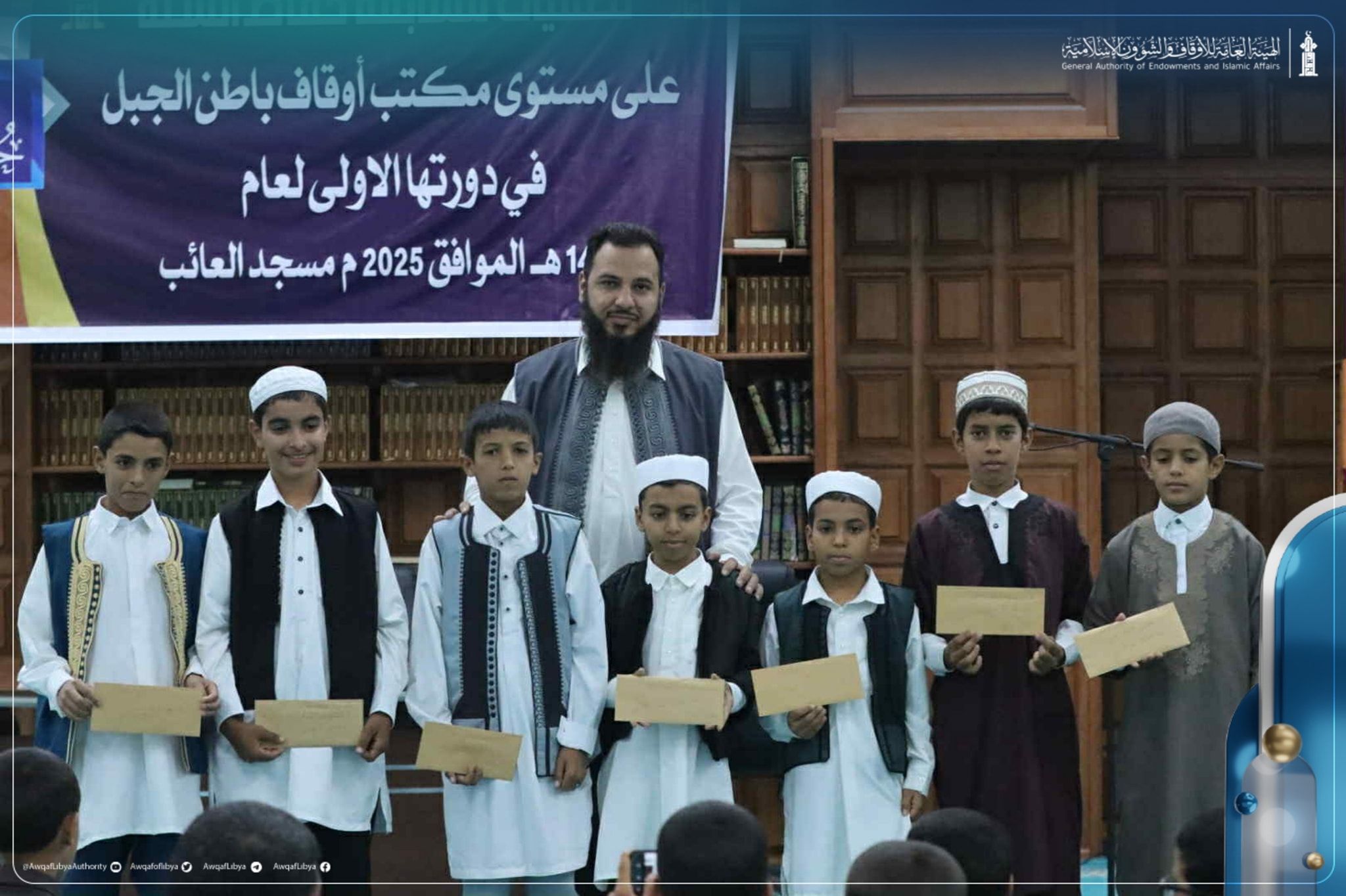 اختتام تصفيات مسابقة حفاظ السنة النبوية على مستوى مكتب أوقاف باطن الجبل، تمهيدًا للتصفيات النهائية المزمع إقامتها في مطلع شهر نوفمبر على مستوى دولة ليبيا، ضمن فعاليات المسابقة التي تنظمها الهيئة العامة للأوقاف والشؤون الإسلامية سعيًا لترسيخ حفظ السنة النبوية وفهمها بين أبناء الوطن.